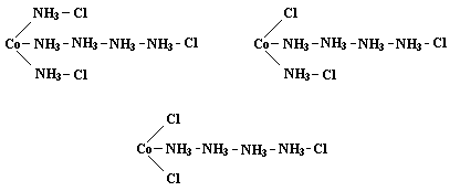 Однако теория Бломстранда – Йёргенсена не могла объяснить, например, существование двух изомерных комплексов состава CoCl3·4NH3 – празеосоли (зелёный) и виолеосоли (фиолетовый). В 1893 г. швейцарский химик Альфред Вернер опубликовал статью "О строении неорганических соединений", в которой изложил основные положения созданной им координационной теории. Теория Вернера (который уже был известен своими работами по стереохимии органических соединений азота) существенно расширила представления химиков о валентности элементов. Главное положение теории состояло в признании за атомами способности, наряду со связями сродства (главная, первичная или обычная валентность), образовывать дополнительные (координационные) связи (побочная или вторичная валентность). Вернер ввёл понятие о комплексном ионе – сложной комбинации атомов и молекул, состоящем из центрального иона, связанного с несколькими молекулами или отрицательными ионами (лигандами), образующими внутреннюю сферу комплекса; главной характеристикой центрального иона Вернер считал координационное число, равное сумме главной и побочной валентностей. Для упоминавшихся выше комплексных солей кобальта в рамках координационной теории предполагалось строение с координационным числом 6: [Co(NH3)6]Cl3 [Co(NH3)5Cl]Cl2 [Co(NH3)4Cl2]Cl