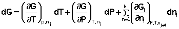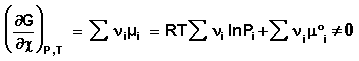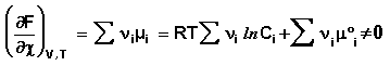 Здесь χ – т.н. химическая переменная, характеризующая только данную химическую реакцию. Поскольку dni = νidχ, для полного дифференциала G можно записать следующее выражение: