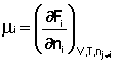 Частная производная термодинамического потенциала по числу молей компонента i-го компонента при постоянных количествах остальных компонентов есть химический потенциал μi данного компонента в системе: