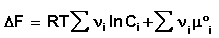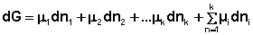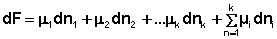 Иначе говоря, химический потенциал i-го компонента равен приращению свободной энергии системы при добавлении одного моля данного компонента к большому объёму системы при постоянных температуре и давлении (объёме). Понятие "большой объём системы" означает, что состав системы практически не изменяется после добавления одного моля компонента. Химический потенциал чистого вещества равен свободной энергии одного моля этого вещества. Учитывая вышесказанное, уравнения (12-13) можно переписать в виде:
