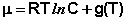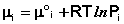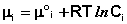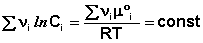 Для стандартных условий (Сi = 1 моль/л) gi(T) = μ°i (стандартный химический потенциал). Окончательно получаем уравнение, связывающее химический потенциал компонента с его концентрацией: