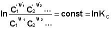 В уравнениях (33-34) Pi и Ci – равновесные парциальные давления и концентрации соответственно. Поскольку Σνiμ°i = const, получаем: