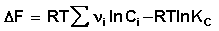 При протекании реакции в большом количестве реакционной смеси, таком, что при превращении ni молей каждого из компонентов концентрации реагентов Сi практически не изменяются, частную производную свободной энергии Гельмгольца по химической переменной можно заменить равной ей величиной отношения ΔF к Δχ, т.е. принять, что