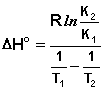 Изучая температурный ход констант ассоциации можно рассчитать энергию образования Н-комплексов. В предельном случае, если считать, что ΔH° комплексообразования не зависит от температуры, можно ограничиться измерением Касс при двух температурах. Тогда: